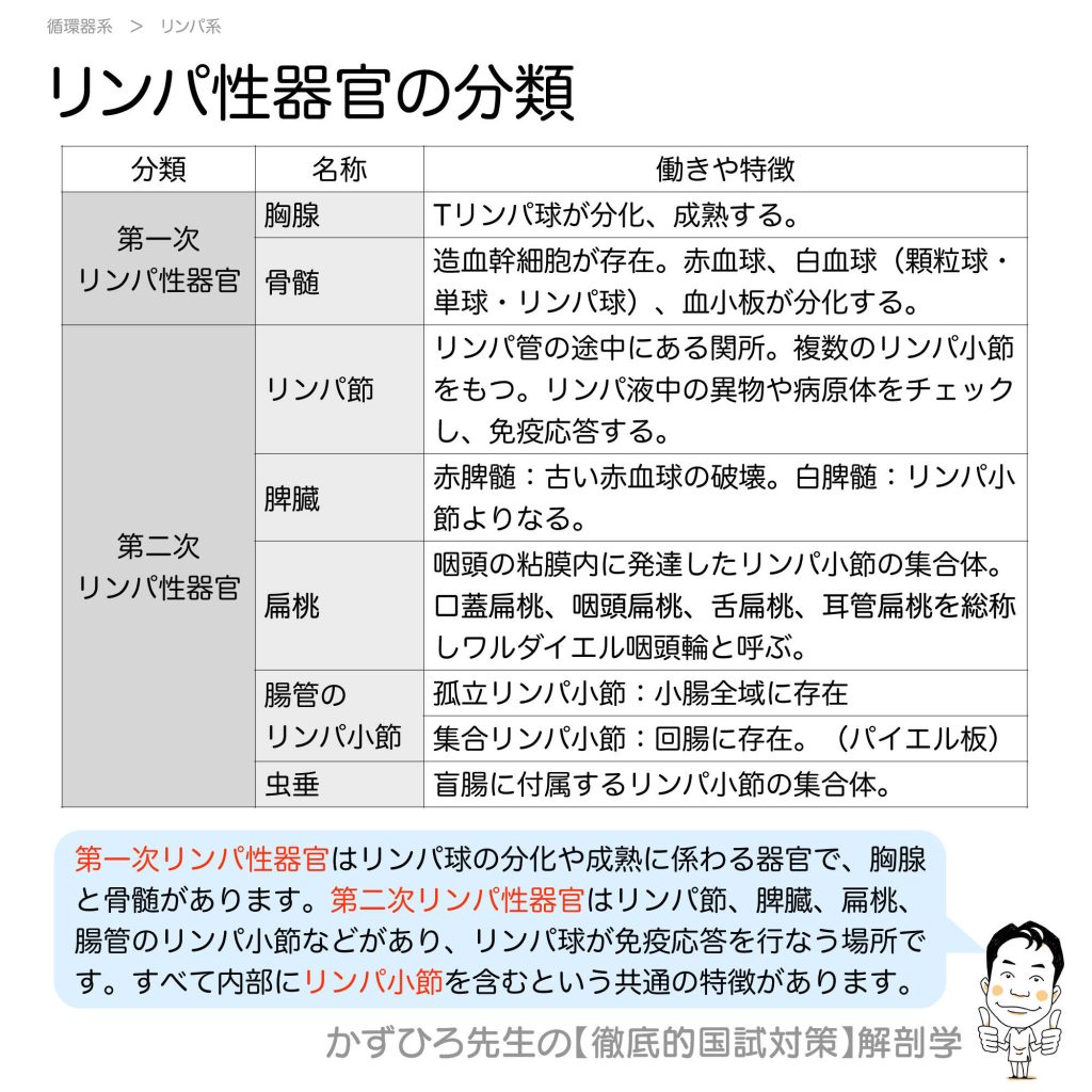 リンパ性器官の分類 - 完全攻略ガイド はじめに リンパ性器官は第一次リンパ性器官と第二次リンパ性器官に分類されます。第一次はリンパ球の分化・成熟を行い、第二次は免疫応答を行う場所です。国家試験で超頻出のテーマです。 詳しい解説 第一次リンパ性... -