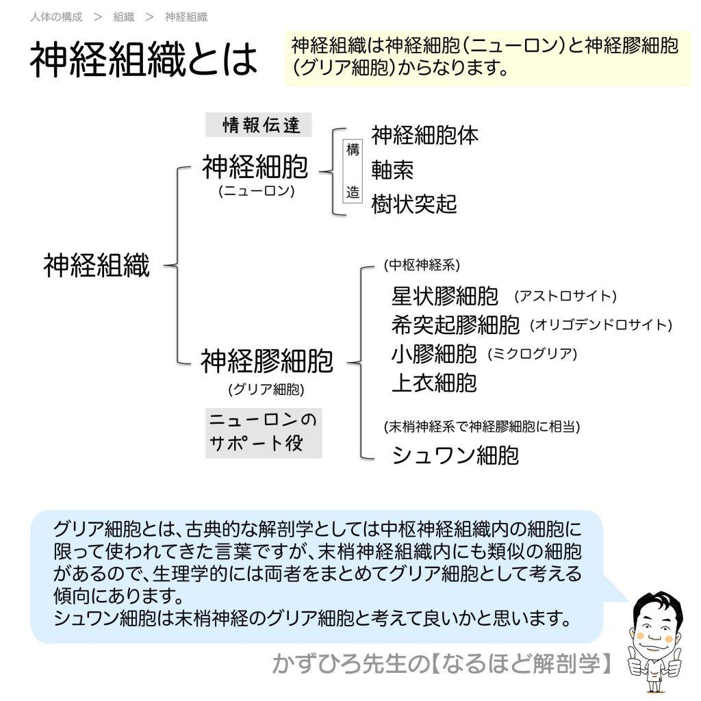 神経組織とは - 完全攻略ガイド はじめに 神経組織は神経細胞(ニューロン)と神経膠細胞(グリア細胞)からなります。ニューロンが情報伝達を担い、グリア細胞がそのサポート役を果たしています。今回は神経組織について詳しく解説します。 詳しい解説 神... -