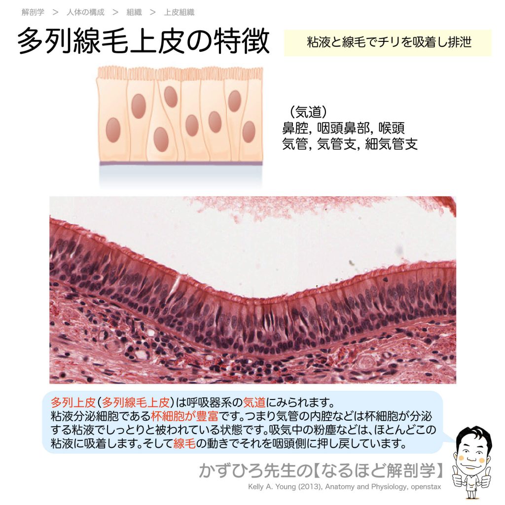 多列線毛上皮 - 完全攻略ガイド はじめに 多列線毛上皮は気道の粘膜を覆う特殊な上皮です。一見重層に見えますが、実際はすべての細胞が基底膜に接している単層上皮です。線毛と粘液で吸気中の異物を除去する重要な機能を持っています。今回は多列線毛上皮... -