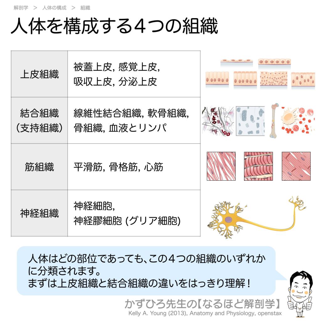 人体を構成する4つの組織 - 完全攻略ガイド はじめに 人体はどの部位を見ても、必ず4つの組織のいずれかに分類されます。この「4つの基本組織」は解剖学・組織学の最も基礎となる知識です。今回は上皮組織・結合組織・筋組織・神経組織について、それぞれ... -