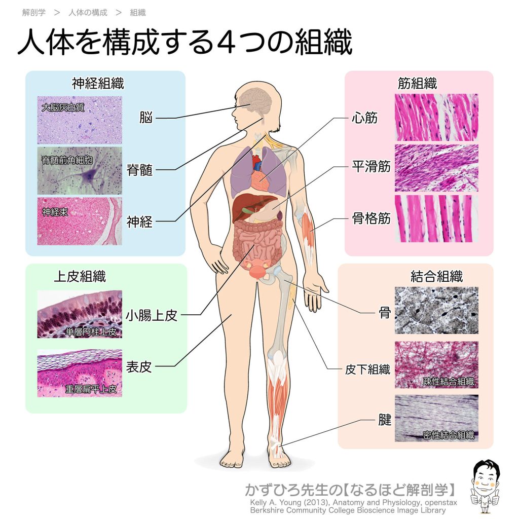 4つの組織の全身分布 - 完全攻略ガイド はじめに 4つの基本組織(上皮組織・結合組織・筋組織・神経組織)は、全身のあらゆる部位に分布しています。それぞれの組織が体のどこに存在するのかを視覚的に理解することで、組織学の知識がより深まります。今回... -