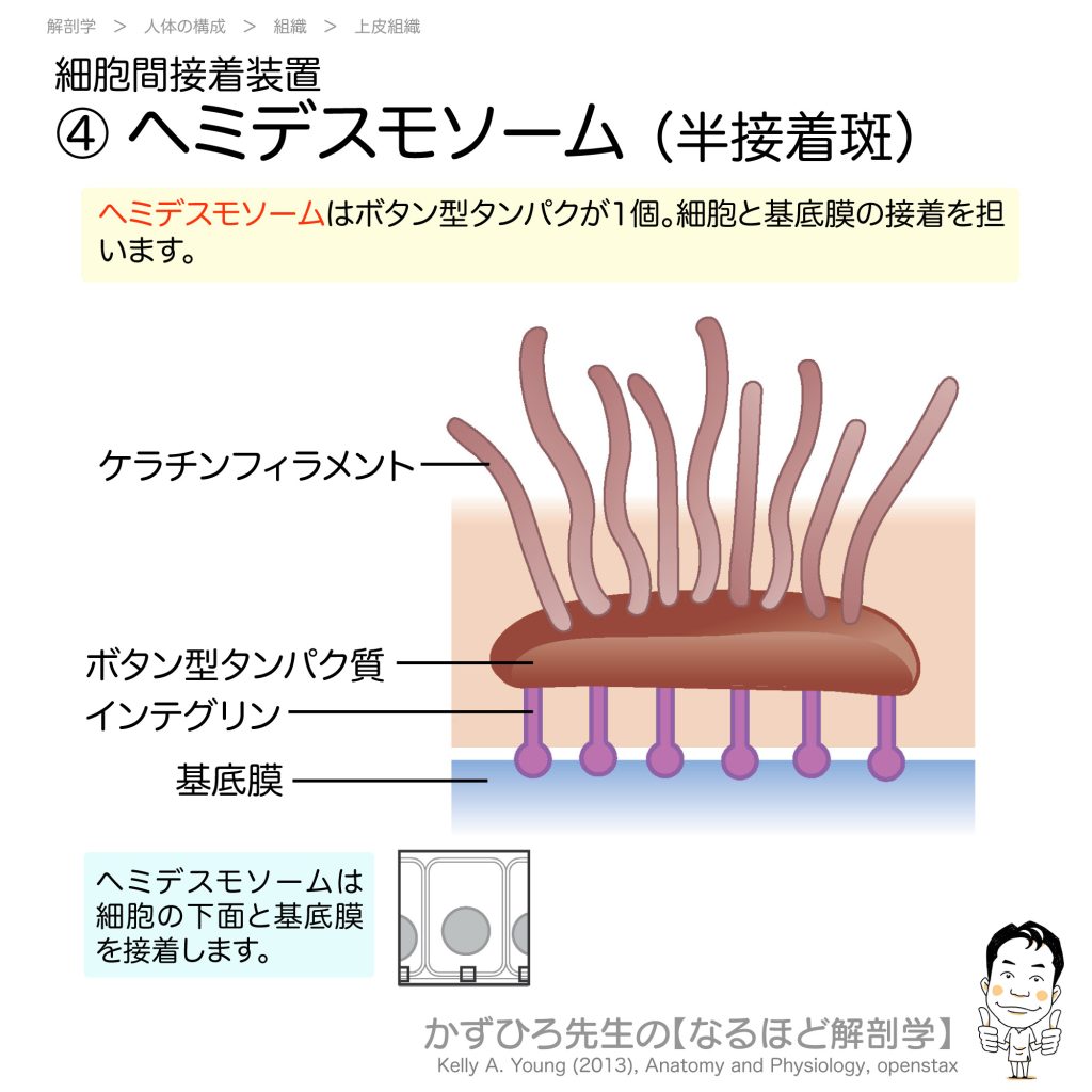 ヘミデスモソーム(半接着斑) - 完全攻略ガイド はじめに ヘミデスモソーム(半接着斑)は細胞間接着装置の一つですが、他の接着装置と異なり、細胞と基底膜を接着します。上皮細胞を基底膜にしっかりと固定する重要な役割を果たしています。今回はヘミデ... -