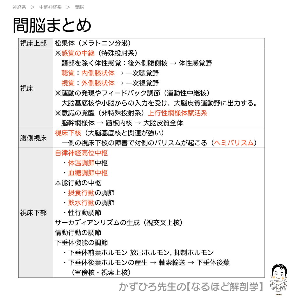 間脳の機能まとめ