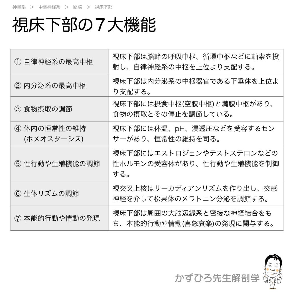 視床下部の7大機能