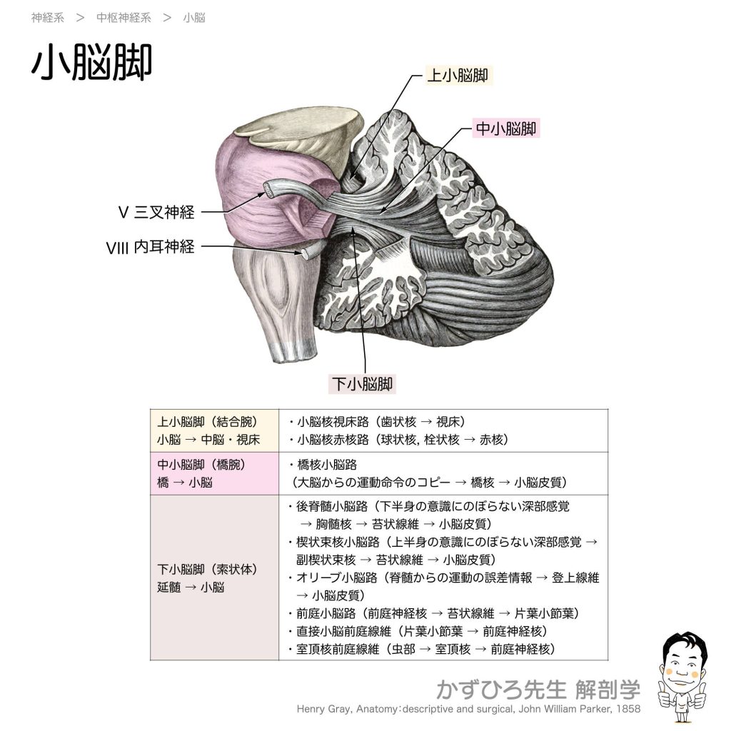赤核オリーブ小脳路と皮質橋核小脳路 - 完全攻略ガイド はじめに 小脳は3つの小脳脚を通して脳幹と連絡しています。大脳皮質からの情報は橋核経由(中小脳脚)とオリーブ核経由(下小脳脚)の2つのルートで小脳に伝わります。この記事では、小脳への入出力... -