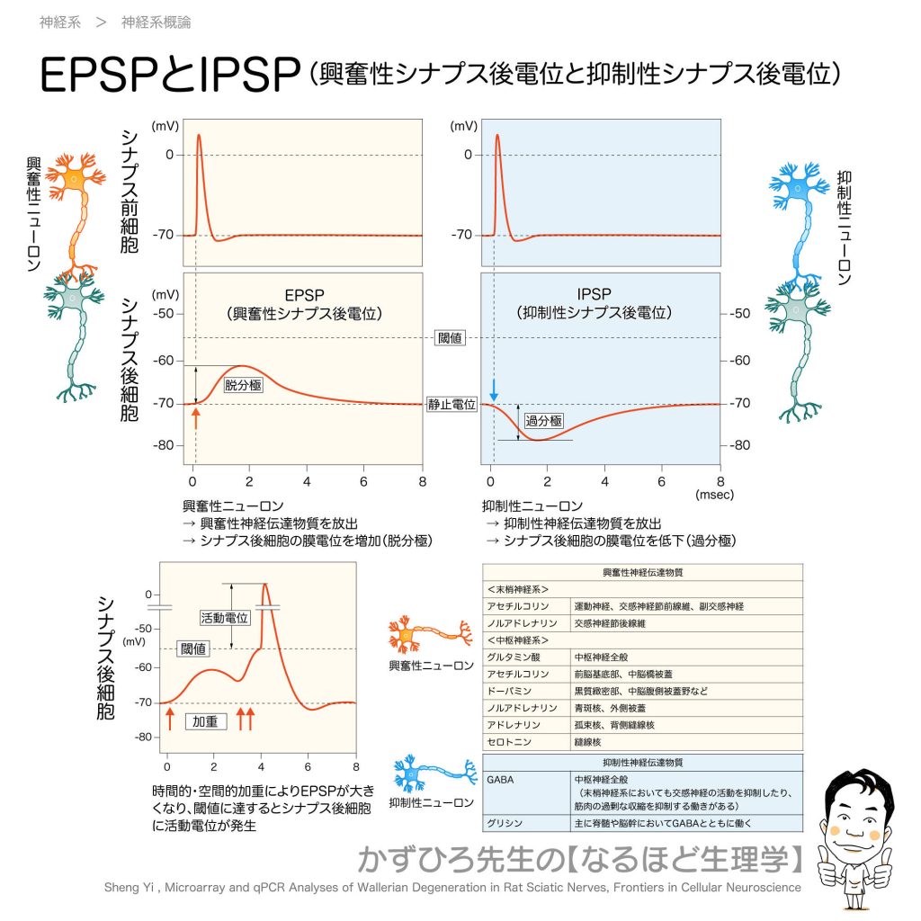 EPSPとIPSP(興奮性・抑制性シナプス後電位)