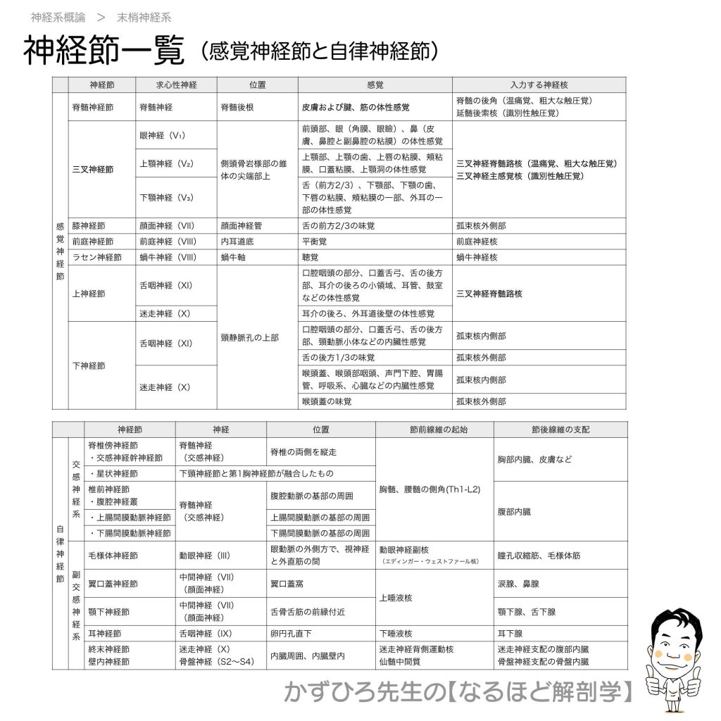 神経節一覧(感覚神経節と自律神経節)