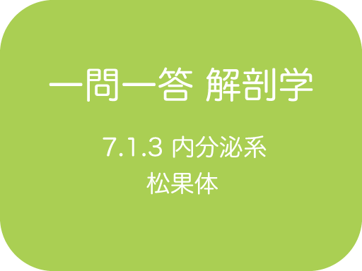 問題演習 問題一覧 【一問一答】7.1.3 内分泌系 - 松果体 【松果体】 松果体は ( ) に存在する 甲状軟骨の前下面 間脳の背側 第4脳室の後上壁 (解答) 間脳の背側 松果体は間脳の背側に位置します。左右の間脳に挟まれる形で第3脳室があるので、第3脳... -