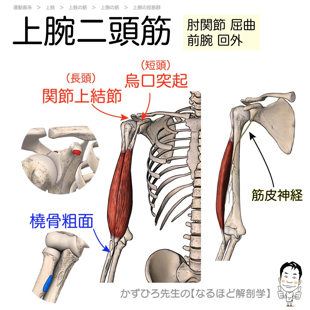 上腕二頭筋の起始・停止・支配神経(biceps brachii)暗記用画像付き