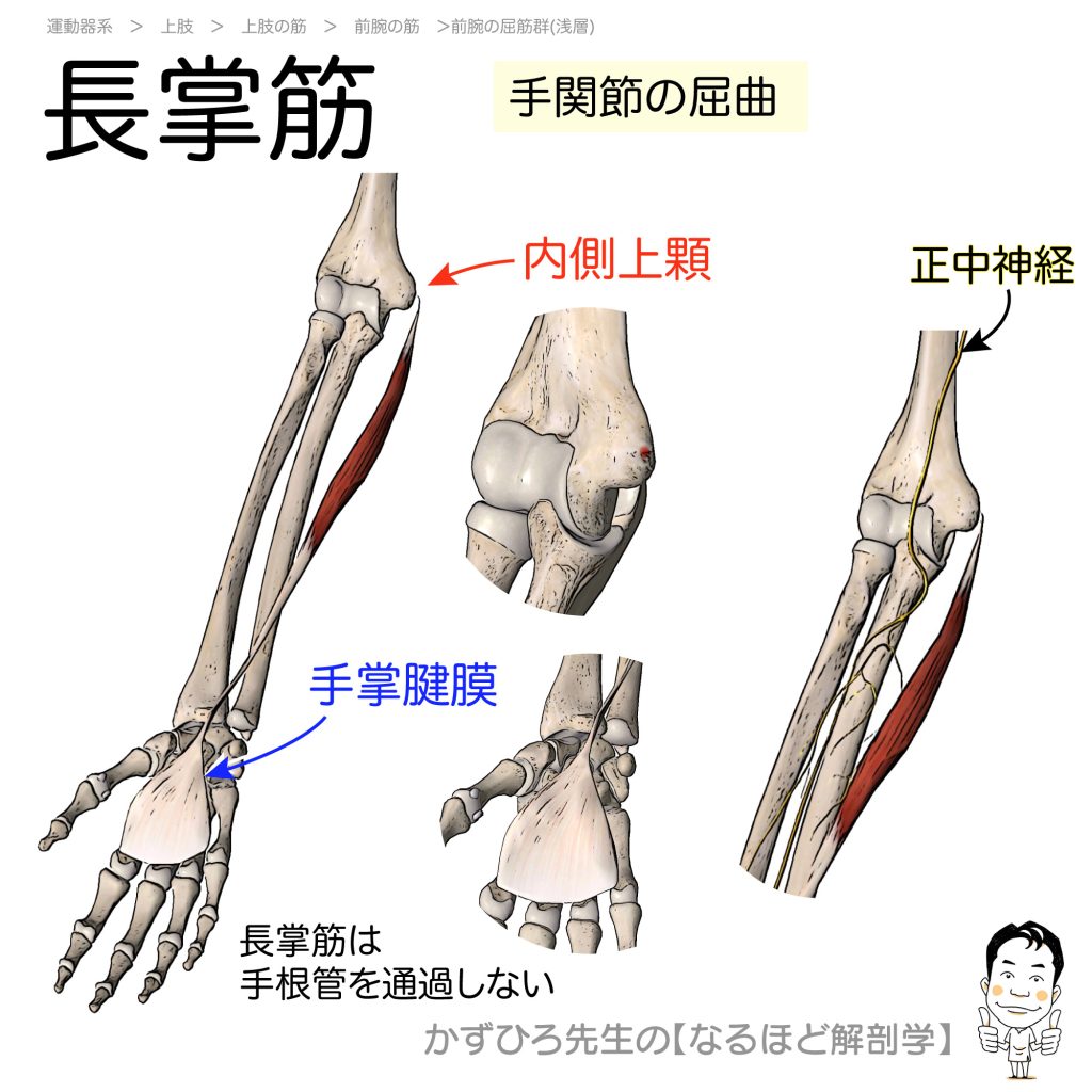 長掌筋の起始・停止・支配神経(palmaris longus)暗記用画像付き